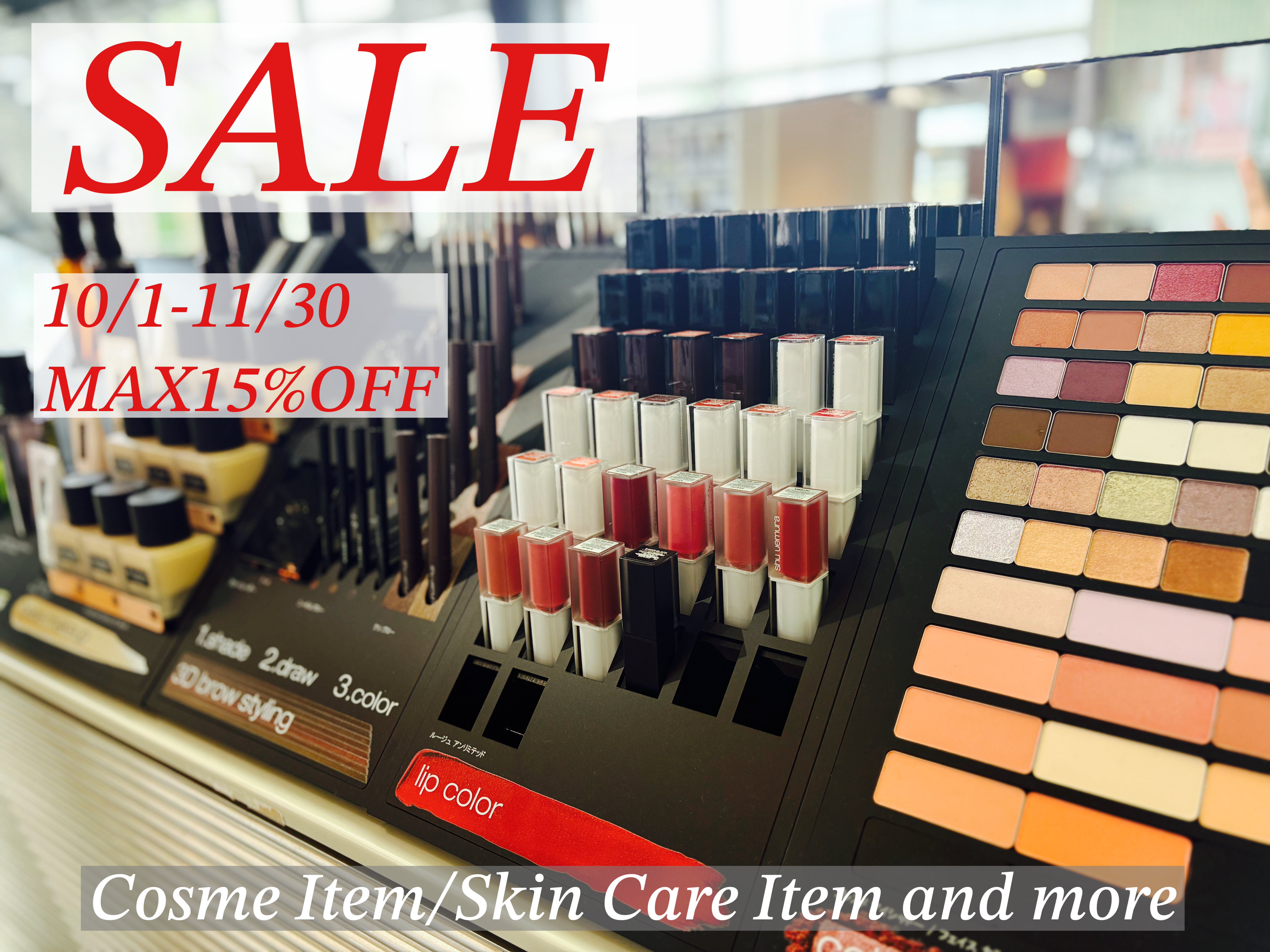 shuuemuraをはじめ、大人気コスメがお得に手に入るチャンス!10/1から11/30(日)まで、対象商品が最大15%OFFになります