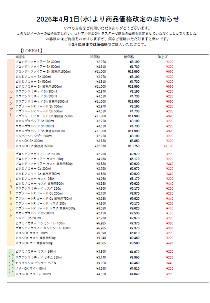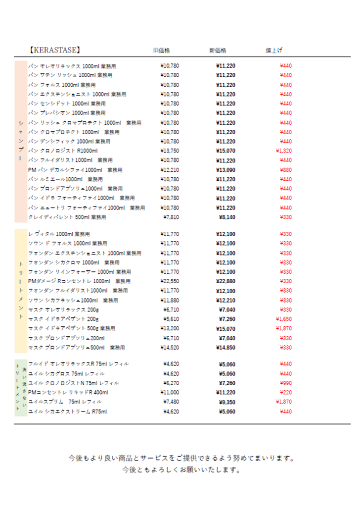 料金改定のお知らせ