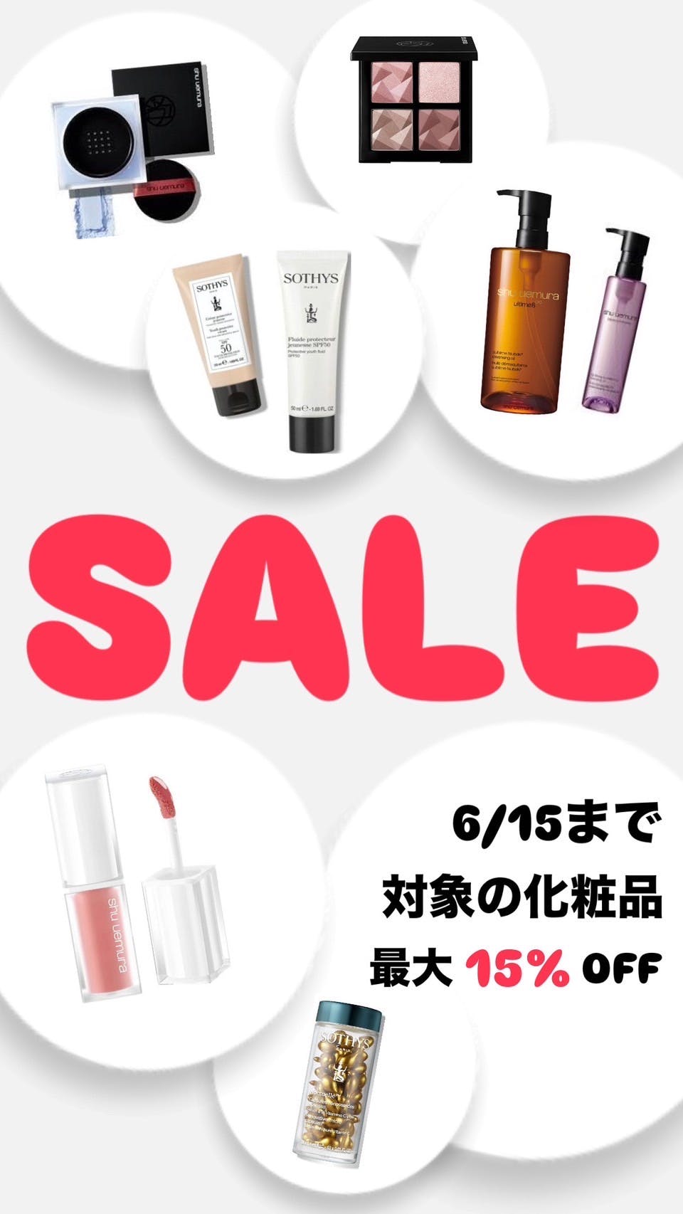 紫外線が強くなるこの時期にお得にスキンケアをgetするチャンスです!6/15まで対象のコスメが最大15%OFF☆
